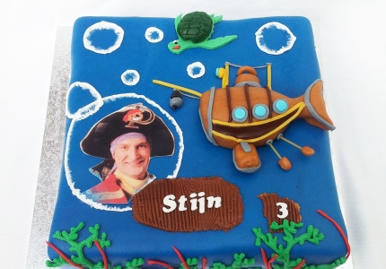 Leuke Piet Piraat taart voor echte piraatjes! Deze Piet Piraat taart is verkrijgbaar in verschillende lekkere smaken. Leuke details zijn de Wonderwaterwereld decoraties en waterbellen van Royal icing! Is uw zoon of dochter helemaal weg van Piet Piraat? Bestel dan deze Piet Piraat taart voor een onvergetelijk Piet Piraat feest!