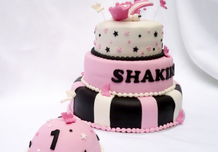 Mijn dochter was erg blij met de prachtige taart met goud, zwart en wit. Bedankt!