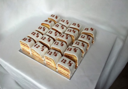 Daarom heen komen halve lange vingers en word met een sierlijk lintje erom heen een sieraad op elke zoete tafel.