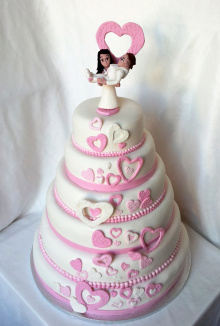 - Keuze uit meerdere lagen met hartjes, zachte decoraties en een handgemaakt bruidspaar.