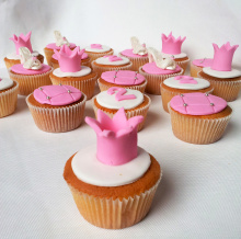 Leuke prinsessencupcakes versierd met leuke eetbare schoentjes, prinsessen kroontje en echt meiden printje. Deze leuke meiden cupcakes in wit en roze waren samen met de bijbehorende prinsessentaart een echte traktatie.