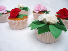 Leuke romantische cupcakes met decoratie. De cakejes zijn luchtig gebakken en hebben een lekker Vanille Ciambella smaak. De cupcakes zijn versierd met mooie roze, rode en witte roosjes en zijn een echte traktatie om op te eten. Dat wordt Smullen.
