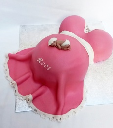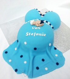 Zoek je een originele manier om de zwangerschap bekend te maken? Kies dan voor een mooie zwangerebuik taart. Deze babyshower taart is gemaakt van 3 boltaartjes en wordt als leuk jurkje aangekleed en geheel naar wens versierd. Ook leuk om de babyshower tevieren zijn de zwangerebuik taarten samen met de baby-boy en baby-girl cupcakes in de kleuren baby-blauw en baby-roze. Willen jullie op een originele manier onthullen of jullie kindje een jongetje of meisje wordt? Denk dan aan een originele onthullingstaart (gender reveal cakes). Aan de hand van de echo van de verloskundige maken wij een taart die roze of blauw van binnen is. Tijdens het aansnijden van de gender taart worden jullie totaal verrast of jullie nieuwe spruit een jongetje of meisje wordt!