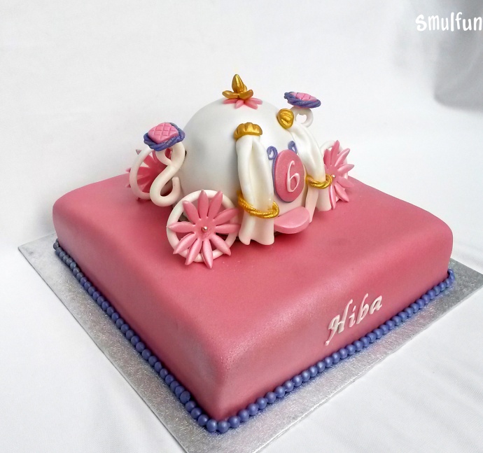Prinsessen koets geheel gemaakt van taart. Deze taart wil toch elke prinses op haar verjaardag hebben. Hele taart met glans spray extra koninklijk uiterlijk gegeven.