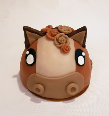 Leuk meptaartje in de vorm van een paardje voor de eerste verjaardag. Het meptaartje is gevuld met een lekkere chocoladevulling in combinatie met een eigen gemaakte ganache.
