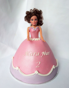 Leuke prinsessentaart voor de verjaardag van Alara. Deze prinses is geheel in stijl bekleed met heerlijke marsepein en fondant en met leuke Royal Icing en bloemetjes heeft de jurk een mooie afwerking gekregen. Een echte traktatie op de verjaardag van uw prinses!