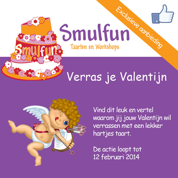 Vertel Smulfun waarom jij jouw Valentijn wil verrassen met een lekker hart. Like onze pagina en vertel ons jouw verhaal en maak je geliefde blij met een romantisch liefdeshart. Dus Liken en reageren!!